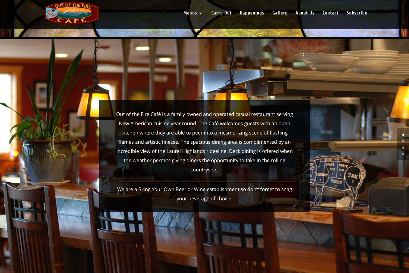 Out of the Fire Cafe is a very delightful restaurant tucked into the Laurel Highlands, about an hour east of Pittsburgh. We created a brand new mobile friendly website, with a lot of new photography, and great new design. Hot Designs has created posters, menus, shirts for sale at the cafe, and much more with this long standing client of Hot Designs.
